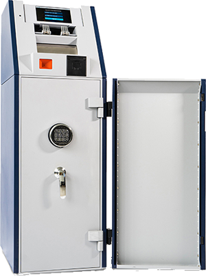 Los depositos de seguridad donde se reciben billetes en montones y el equipo los cuenta y resguarda en una caja fuerte imprimiendo un ticket comprobante de deposito.